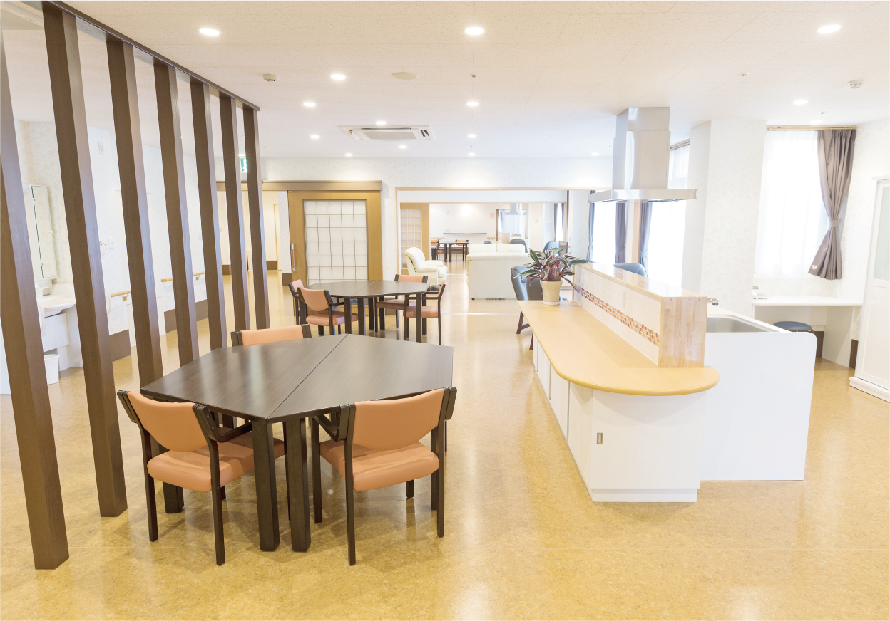 | 職員定数(令和6年3月末時点) | 施設長 1名 事務長 1名 生活相談員 2名 介護支援専門員 1名 機能訓練指導員 1名 看護職員 5名 介護職員 29名 管理栄養士 1名 事務職員 2名 清掃職員 3名 |